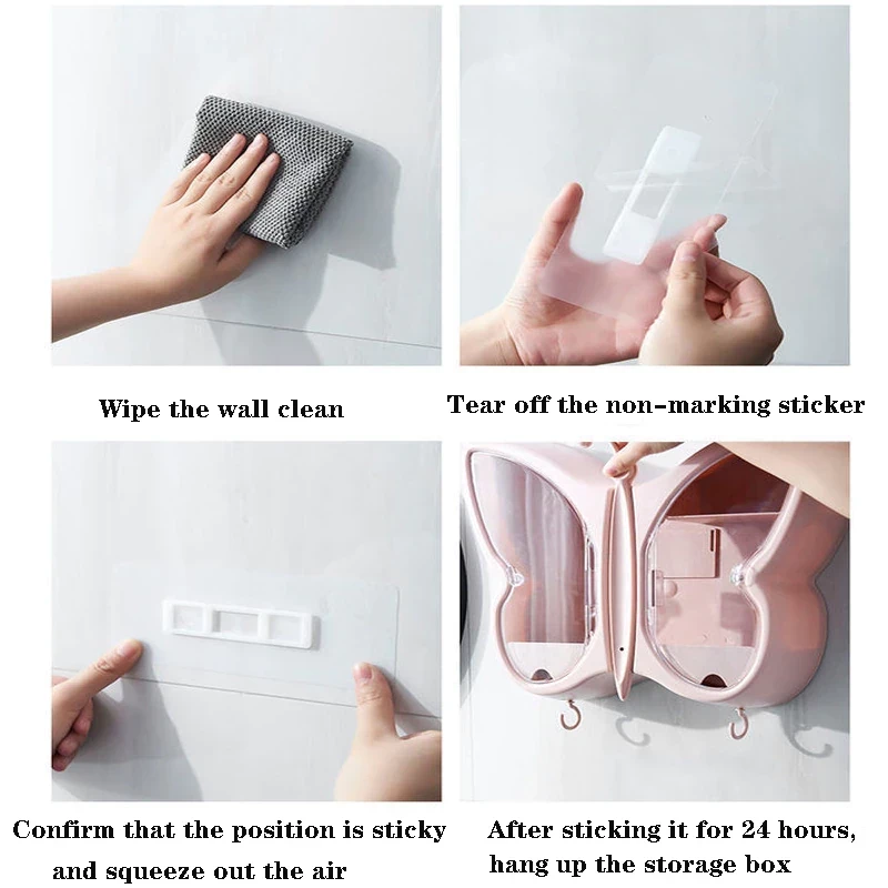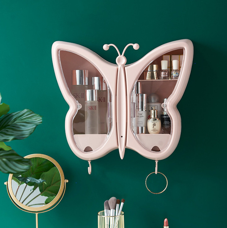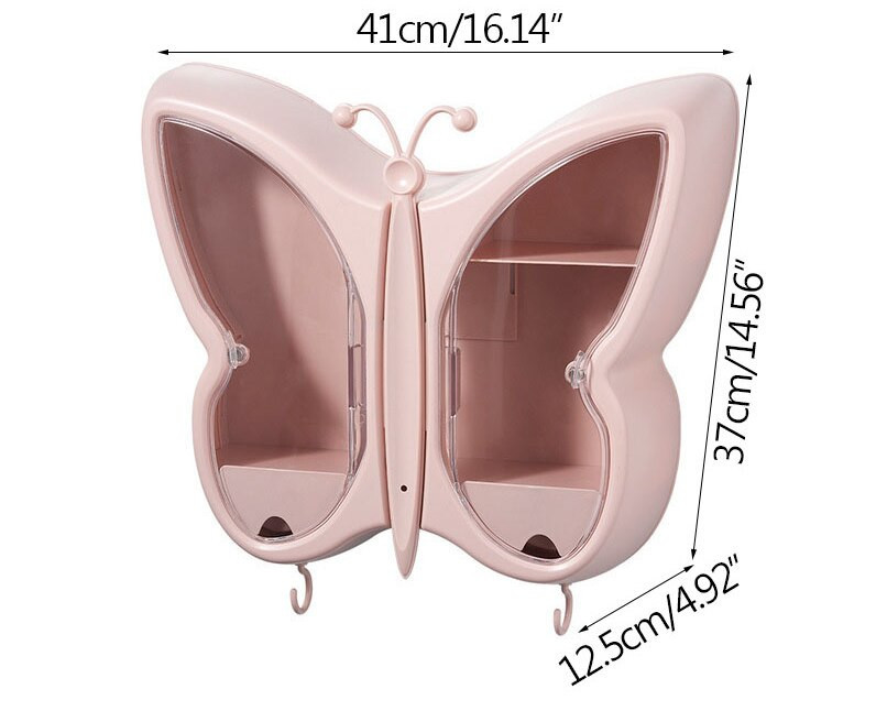 Настінний органайзер для косметики пластиковий для ванної кімнати. У формі метелика з дверцятами.