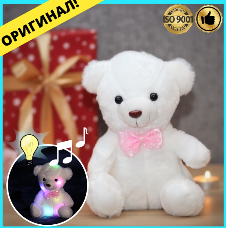 Прекрасний подарунок як для дитини, так і для коханої дівчини. Ніжний на дотик, а під час вмикання підсвічується м’яким різнобарвним світлом, що переливається.
