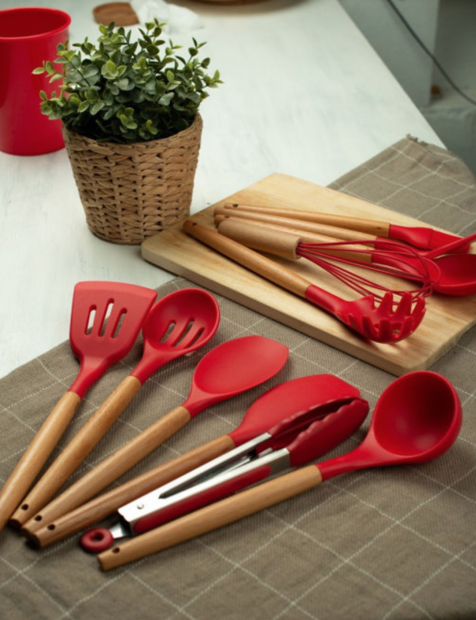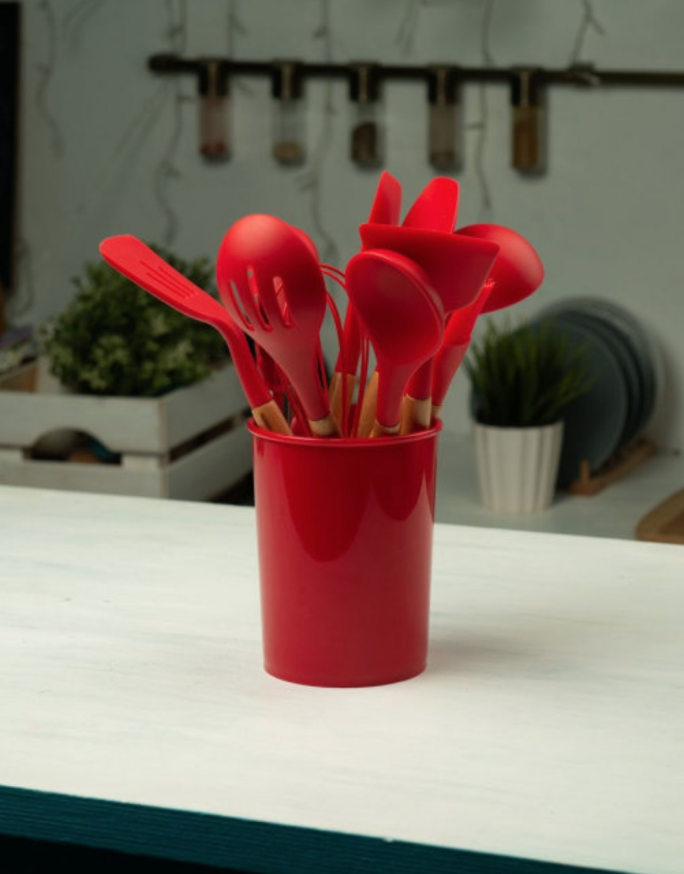 Кухонний набір — незамінний надійний помічник на Вашій кухні, являє собою 11 необхідних предметів для кожної господині та відерце для зберігання.