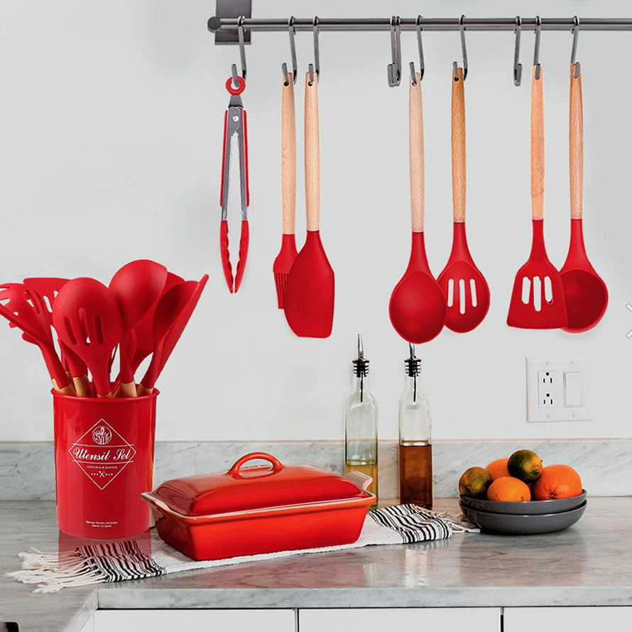 Силіконовий кухонний набір приладдя з відерцем 12 предметів. Набір кухарів із силікону ZP-036B