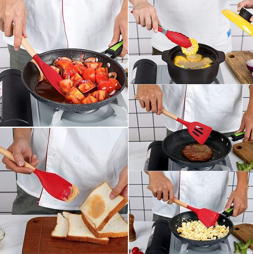 Він виготовлений із харчового, термостійкого, антипригарного силікону та добре відполірованого натурального дерева. Безпечний для використання з харчовими продуктами, нетоксичний, без запахів, витримує температуру до 230 °C.
