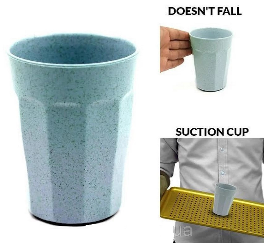 Цей стакан дуже надійний і міцний, адже його фактично неможливо перекинути! Знизу стакана є надміцний присосок, за допомогою якого він кріпиться до будь-якої твердої поверхні. Вам тільки потрібно поставити склянку та трохи притиснути її.