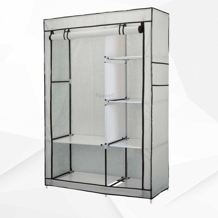 Велика тканинна шафа «STORAGE WARDROBE KM-105» — це стійка збірна металева конструкція, на яку по всьому периметру натягується тканинний чохол. Ця тканинна шафа є чудовим варіантом розв’язання проблеми розміщення речей у квитків, що орендуються, гуртожитках, на дачах.