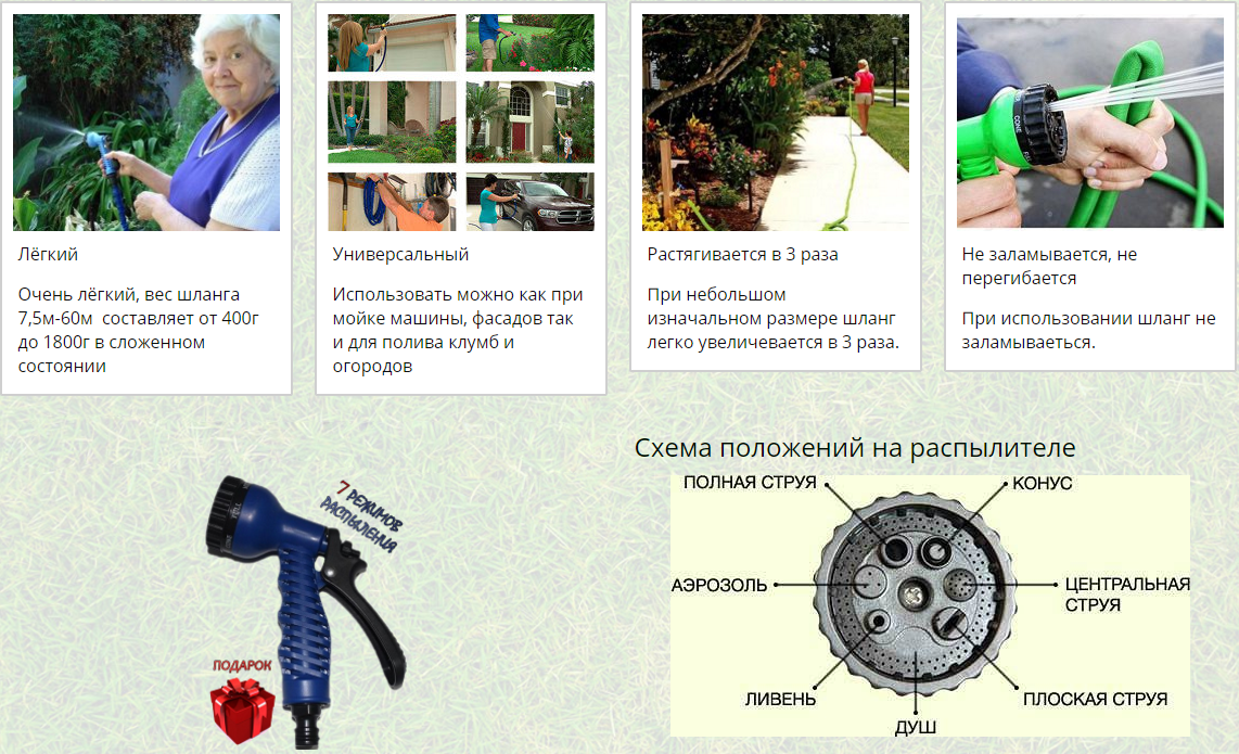 Поливання городу, саду або квітника — стане не тільки приємним заняттям, але й частиною Вашого відпочинку. Шланг XHOSE абсолютно відрізняється від усіх шлангів, які Ви коли-небудь бачили раніше. Його довжина змінюється — варто ввімкнути воду, і він починає розтягуватися.