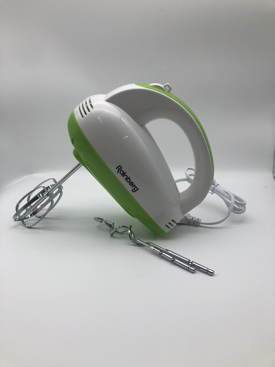 Ручний міксер Rainberg належить до типу досить компактних, але дуже потужних моделей із мотором, максимальною потужністю 400 Вт. Цей прилад обладнаний 5 швидкісними режимами роботи, що дають змогу ефективно збивати продукти різної щільності. У комплекті з міксером Ви знайдете додаткові гаки для замішування тіста, що гідно зможуть оцінити ті господині, які люблять тішити свою сім’ю різними випічками. А два вінчика для збивання дадуть змогу швидко та якісно збити потрібний Вам продукт. За допомогою ручного міксера Rainberg ви з легкістю потішите всю сім’ю смачним повітряним десертом.