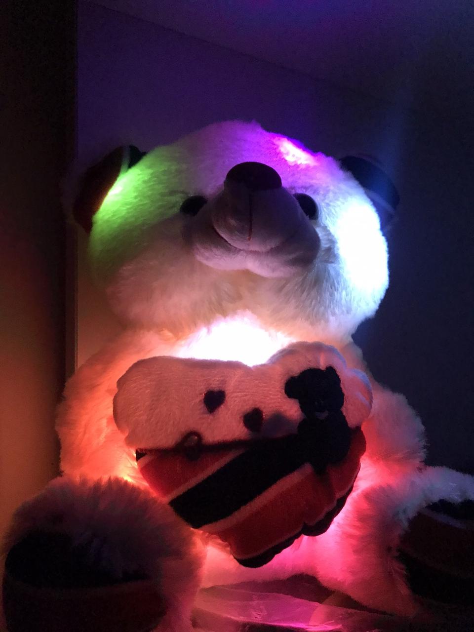 Неймовірно приємний і ніжний на дотик плюшевий світний ведмедик стане найкращим другом для коханої дівчини або дитини. Вдень ведмедик даруватиме море усмішок і позитиву. Вночі теплоту та ніжність своїм сяйвом, охороняючи спокій.
