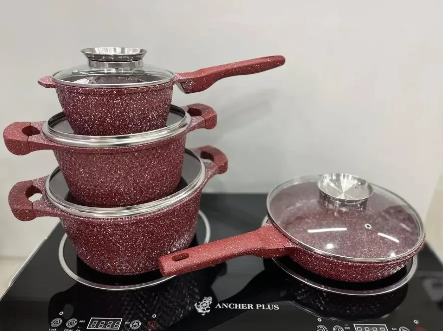 Набір каструль і сковорода з гранітним антипригарним покриттям Higher Kitchen (червоного кольору)