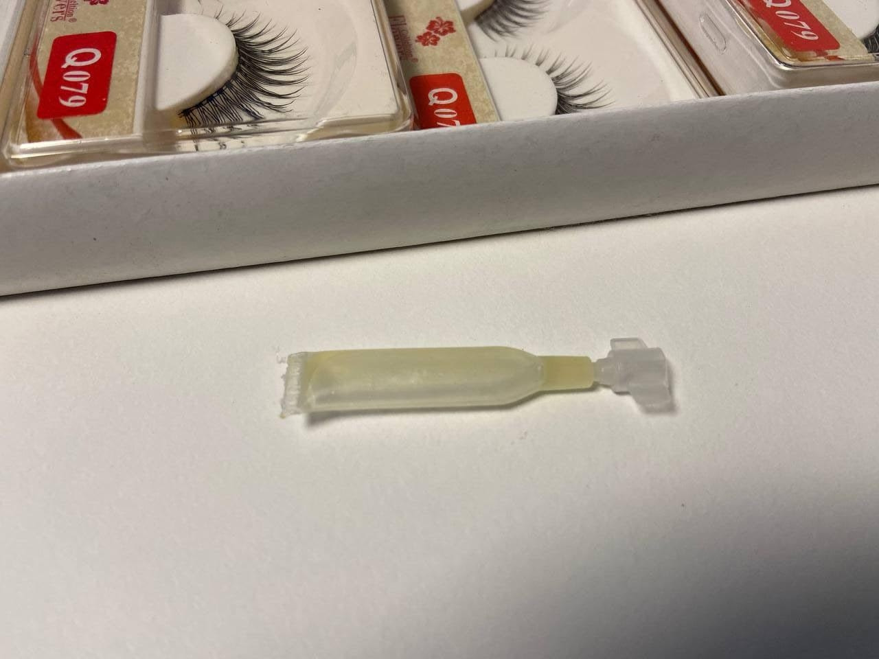 2. Нанесіть невелику кількість клею для стрічкових вій (чорного або безбарвного) на основу стрічки.